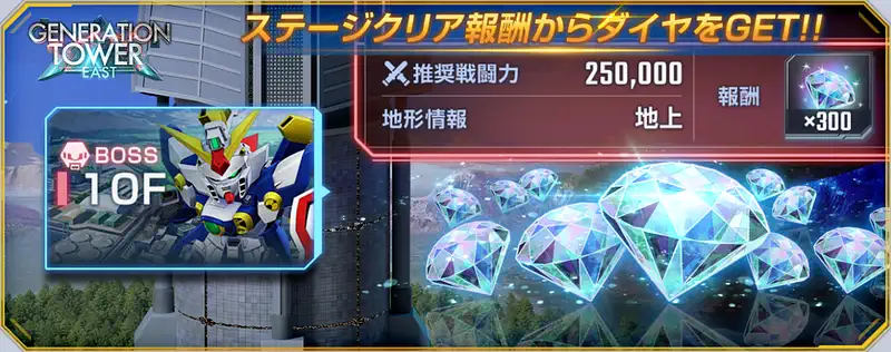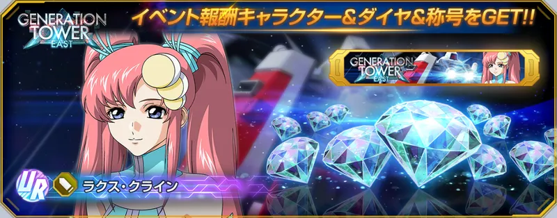 ジェネレーションタワーは各階層ごとにクリア報酬があり、イベントを進めることでイベント限定URパイロットやダイヤ、称号、「SP化チップ」、「SP化バッジ」、「武装強化パーツUR」などを獲得できる。