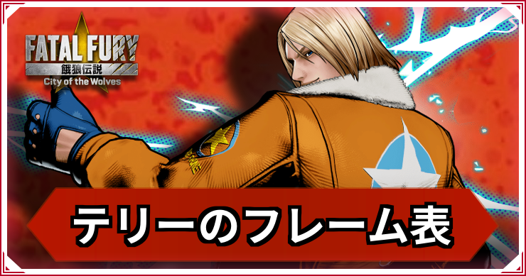 餓狼伝説CotWの「テリー・ボガード」について掲載しています。フレーム表やコマンド、キャラのランク・評価をまとめていますので、餓狼CotWの攻略にお役立てください。
