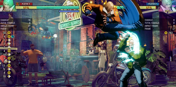 テリーのコマンドコンボ1の2ヒット目でフェイントすることでヒット時8F有利を得ることができる。
