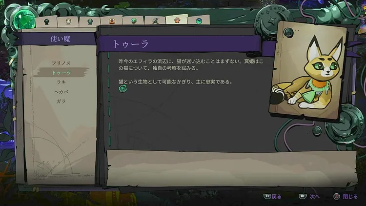 連れていく使い魔をトゥーラかガラにしておくことでも攻撃を耐えられる回数を増やせる。他の使い魔はザグレウス戦において有効とは言えない。