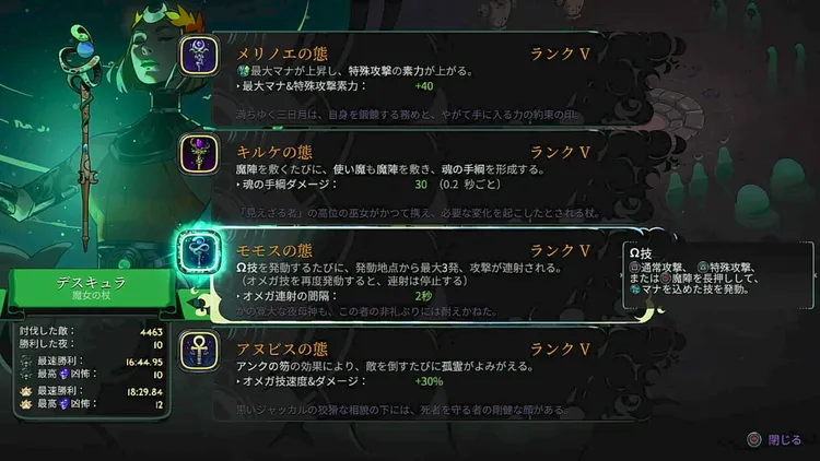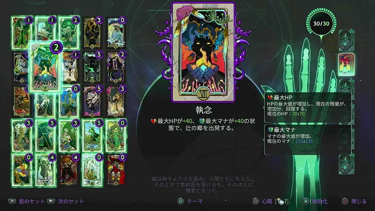 魔札の「執念」や「死」を装備しておけば、ザグレウスの攻撃を耐えられる回数が増えるので必須級におすすめ。