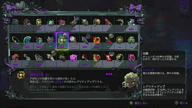 武具と相性の良い功徳を得るために、「調和の光子」などといった功徳関連の賜物を装備するのもおすすめ。