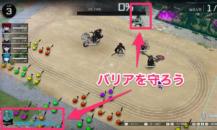 現れる侵校生の中でも多くの割合を占める「ダルマー」は、バリア装置に近づくと爆発して大ダメージを与えてくる。ダルマー自体のHPはかなり低めなので、バリアに近づかれる前に早い段階で倒し切ってしまおう。