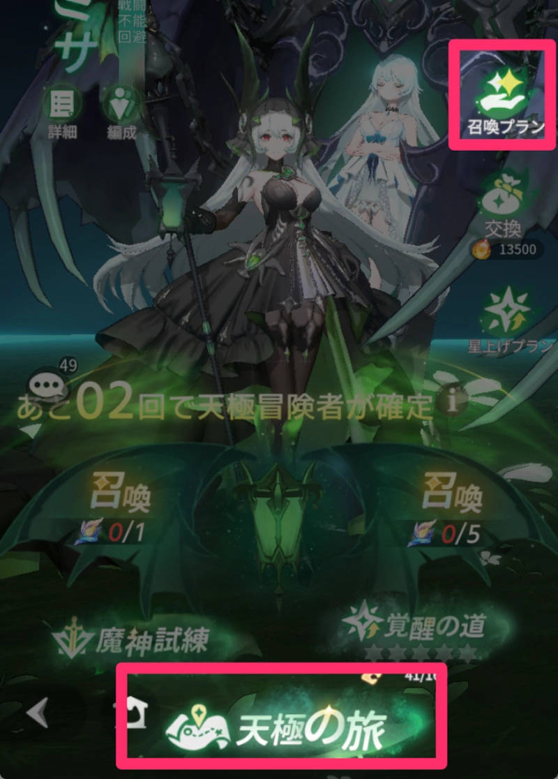 ガチャ筐体内にある天極の旅を攻略し、光なき聖典でURキャラの擬似星上げを行うことで、召喚プランの条件達成、鍵の取得につながる。