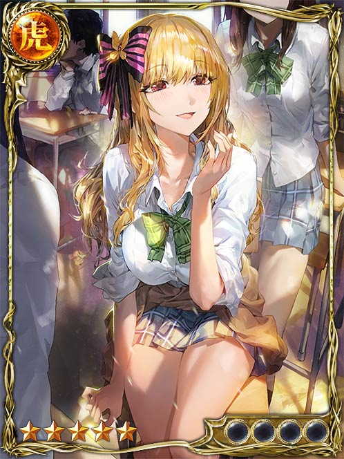 | 放課後の予定は譲れない!自身の不動石の残り回数を+1する。不動石の残り回数が0の状態でも増加する。レベルが20になると消費BPが25になる。1回の抗争で2回使用できる。 | |