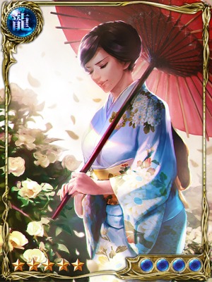 | 白椿の花弁が、彼女の代わりに泣いてくれる。気絶者を含む味方前衛全員のダウンしたパラメータを全てリセットする。さらに気絶者を含む味方前衛全員の全パラメータを超極大アップする。賢強化奥義時は効果が15倍になる。賢強化奥義の効果も受ける。さらに自身のアップしたパラメータの10%分を上昇させる。対象者の合計パラメータがプラス時のみ発動。1回の抗争で3回使用できる。 | |