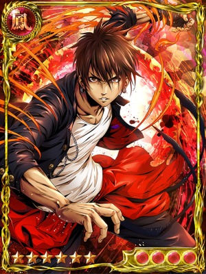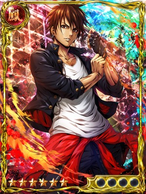 | 諦めの悪い、炎を宿した心。気絶者を含む敵前衛全員の全パラメータを壊滅的にダウンする。さらに気絶者を含む味方前衛全員のダウンしたパラメータを全てリセットし、全パラメータを超絶アップする。賢強化奥義時は効果が20倍になる。賢強化奥義の効果も受ける。さらに気絶者を含む敵前衛全員の不動石を2つ消去する。1回の抗争で4回使用できる。 | |