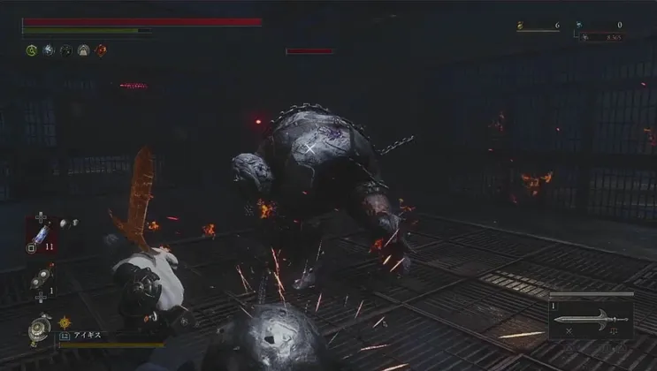 鉄球を振り回す中ボスを倒す
