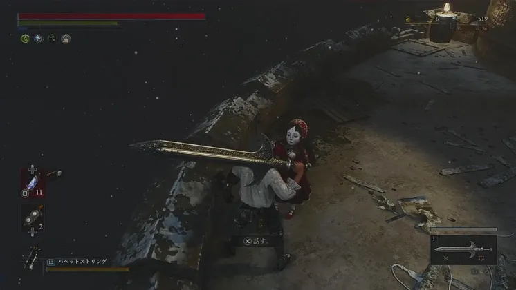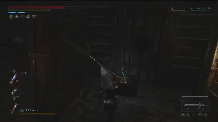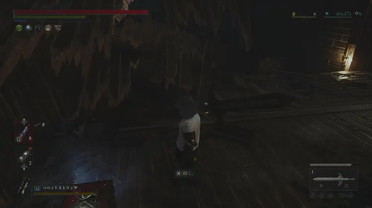 少し進んで船が崩れている所から下り道から最下層に向かい牢屋内にアイテム:錬金術師の指示書、狂気の人形からの伝言