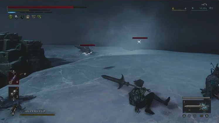 難破船を抜けた先でスターゲイザー(凍りついた海辺)を修復 - 04凍りついた海辺道なりに進む古代の円盤:氷を飛ばしてくる敵がいる脇道