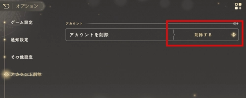 ガチャの結果が気に入らなかったらオプションからアカウントを削除しよう。