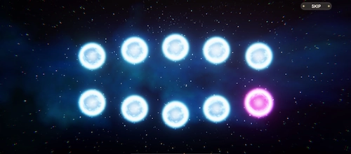 いずれも光が並んだ後にタップすると光がキャラアイコンへと変化するが、タップ時に画面が暗転すると暗転演出が発生し、暗転後に登場したキャラが確定となる。
