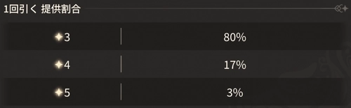 最高レア全体の排出確率が3%なので、ピックアップキャラなど特定のキャラ単体に限定すると排出確率はもっと下がる。