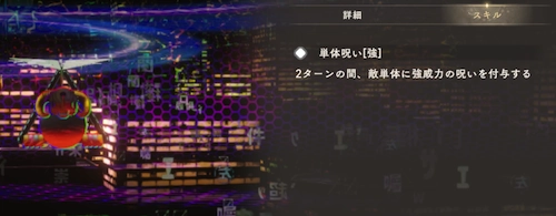 数ターン経過後に出現する左側の雑魚敵もこちらに呪いが付与されているとバフを強化してくるアビリティがあるので、できるだけ呪い状態にならないように立ち回ろう。
