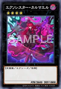 | レベル4モンスター×2 このカード名の①③の効果はそれぞれ1ターンに1度しか使用できない。①:このカードが「エクソシスター」モンスターを素材としてX召喚に成功した場合に発動できる。このターン、お互いに墓地のカードの効果を発動できない。②:このカードは墓地から特殊召喚されたモンスターが発動した効果では破壊されない。③:このカードのX素材を1つ取り除き、相手フィールドのモンスター1体を対象として発動できる。そのモンスターを持ち主の手札に戻す。 |