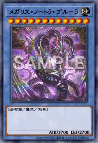 | 「メガリス」カードにより降臨。このカード名の①②の効果はそれぞれ1ターンに1度しか使用できない。①:このカードが儀式召喚に成功した場合、自分の墓地の儀式モンスター1体を対象として発動できる。このカードのレベルをそのモンスターと同じにする。その後、対象のモンスターを手札に加える。②:自分・相手のメインフェイズに発動できる。レベルの合計が儀式召喚するモンスターのレベル以上になるように、自分の手札・フィールドのモンスターをリリースし、手札・デッキから「メガリス」儀式モンスター1体を儀式召喚する。 | |