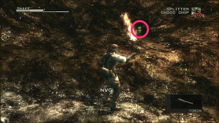 暗視ゴーグルがあった場所の後ろの壁の上にケロタンがある。