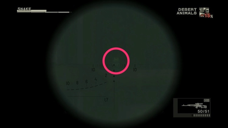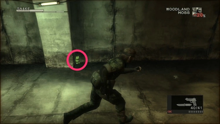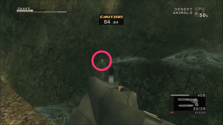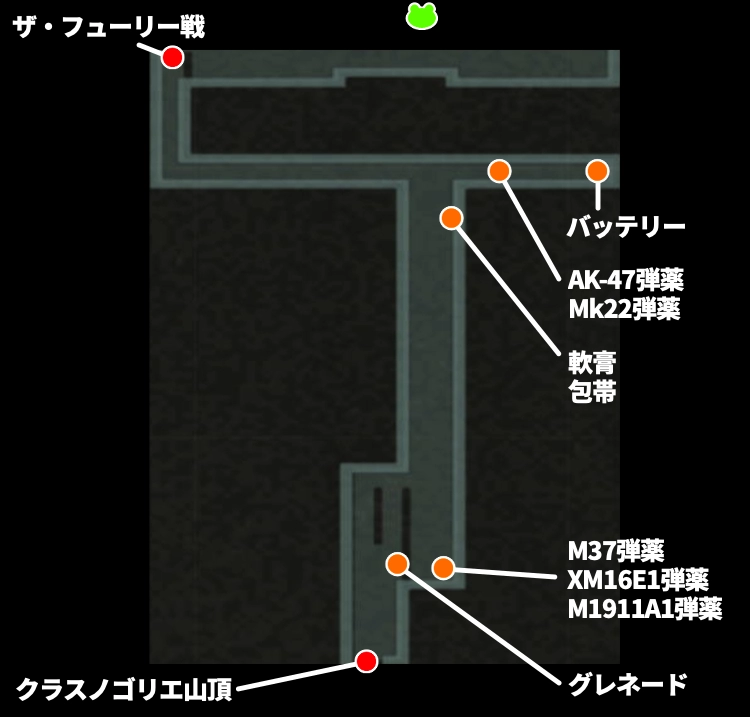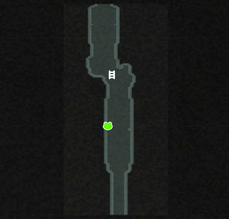 通路から直進した場所に立ち、スナイパーライフルで奥の水道管を覗くとケロタンがある。