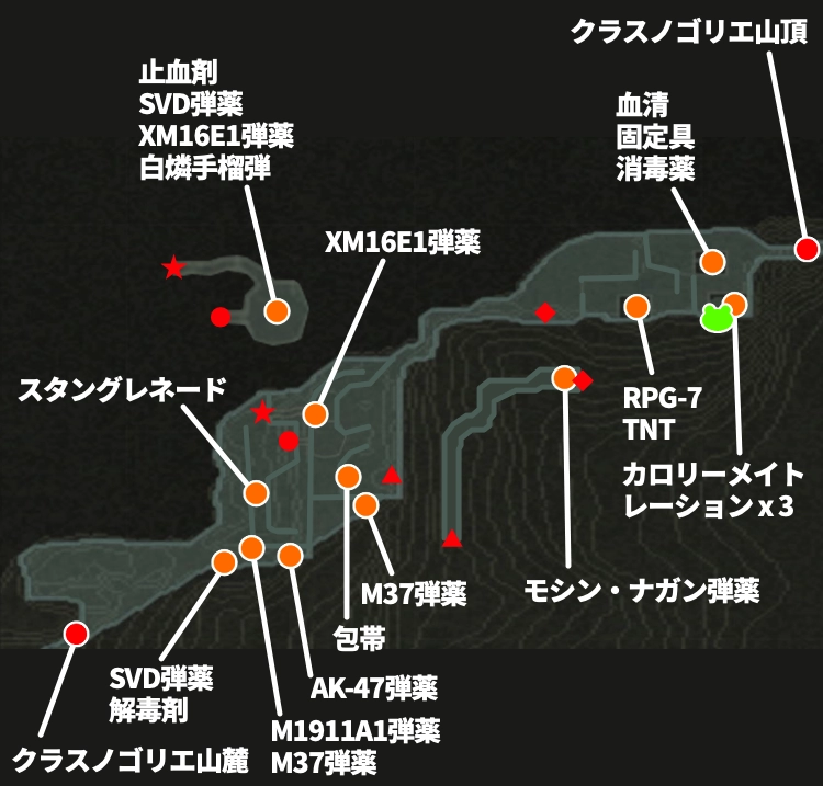 マップ北東部にあるクラスノゴリエ坑道へ向かおう。
