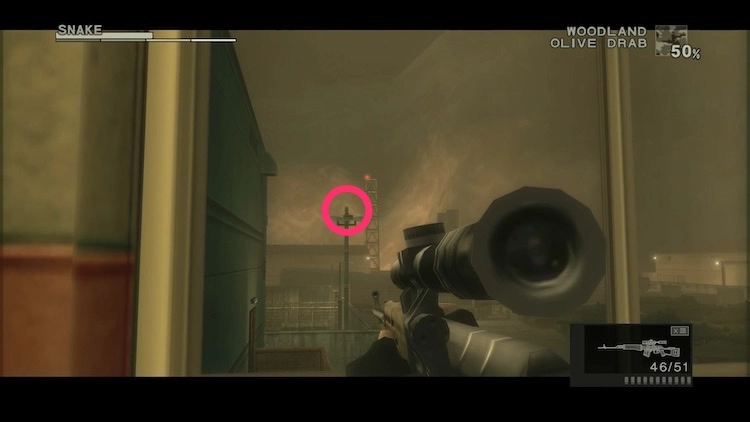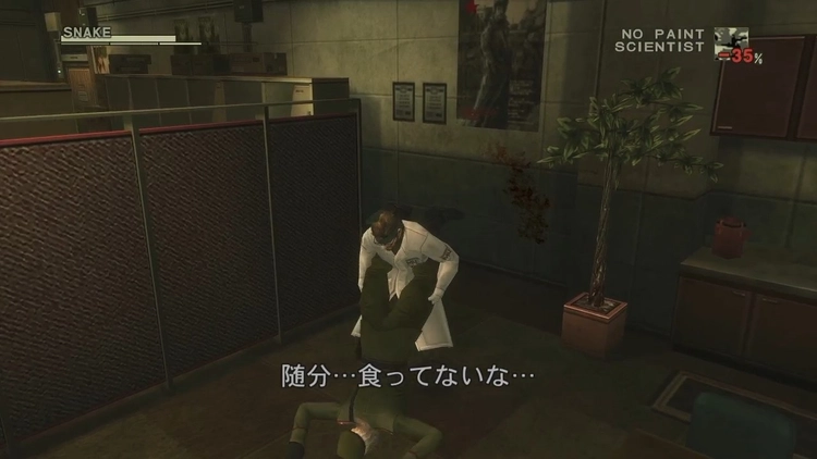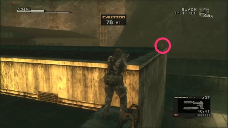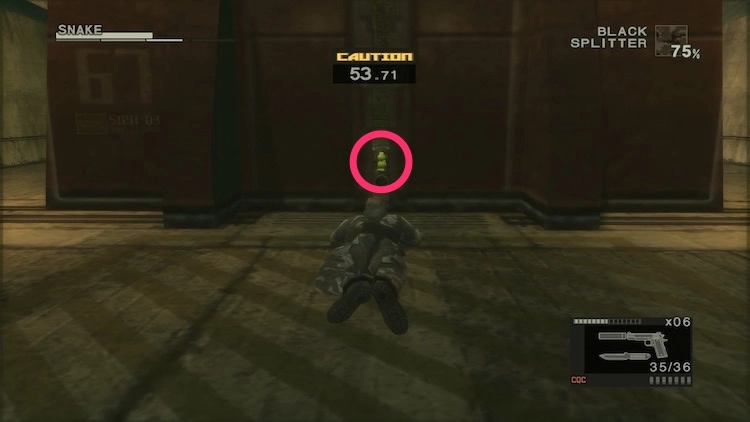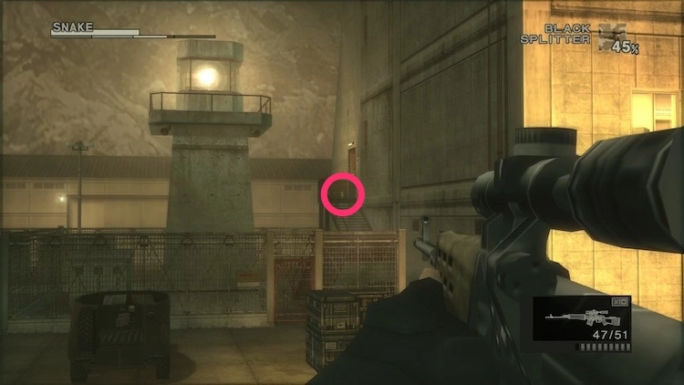 変装することで兵士に怪しまれずに行動できるため、比較的楽に探索できる。前回同様科学者には変装がバレてしまうため、タバコ型麻酔ガス銃で眠らせるのがおすすめ。