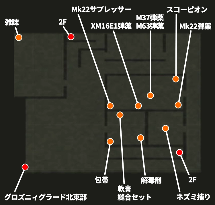 グロズニィグラード北西部の北には武器庫があるため、余裕があれば破壊しておこう。