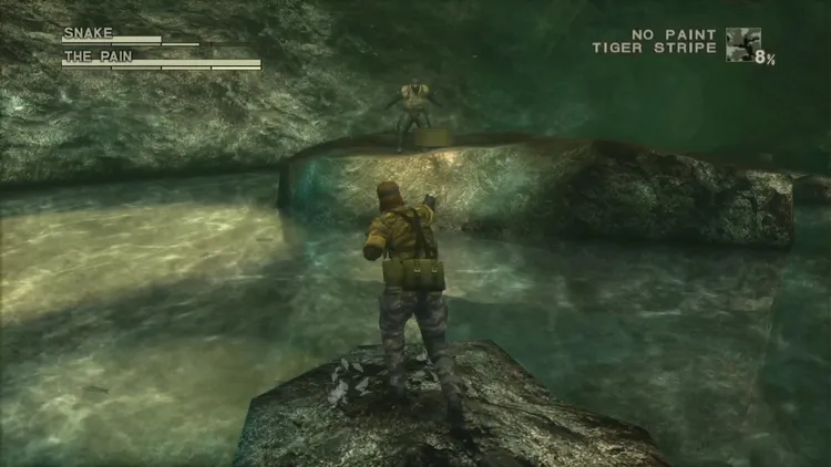 ザ・ペイン戦のエリアは、スネークが水中から登ることができる足場が2個所ある。ザ・ペインの蜂攻撃は発動後一箇所にとどまるので、定期的に足場を行き来しながら戦うのがおすすめだ。