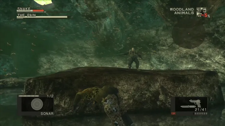 ザ・ペインの蜂攻撃は、水中に潜ることで安全にやり過ごすことができる。スネークの周りに蜂が出現したら、急いで水中に飛び込もう。