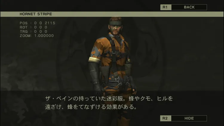 ザ・ペインをスタミナキルすると、ユニフォーム「HORNET STRIPE」が入手できる。蜂やクモ、ヒルに襲われなくなる上に、蜂の巣から出てきた蜂が敵兵に攻撃するようになる効果を持つ。