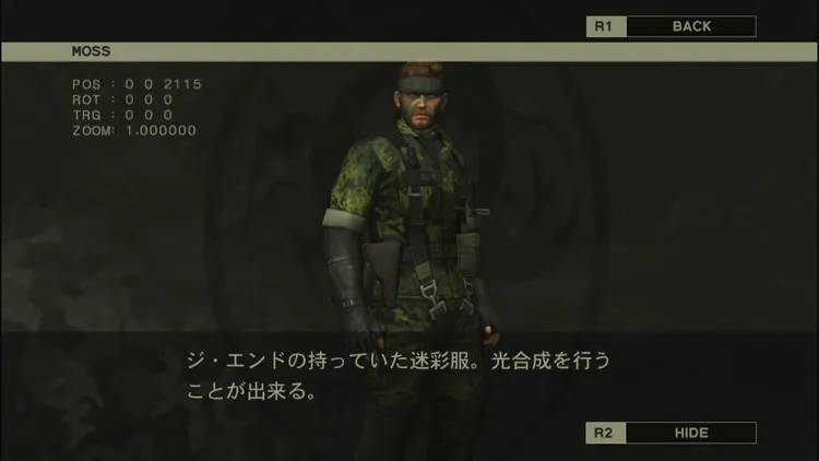 ジ・エンドは、他の兵士と同様に背後からストーキングで近づいてから主観モードでジ・エンドの頭部に銃を突きつけることでホールドアップが可能。初回に限り、ユニフォーム「モス」が入手できるので、目指す倒し方に関わらず1回はホールドアップしておくのがおすすめだ。
