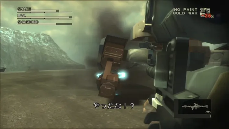 キャタピラへの攻撃は、シャゴホッドの回転だけでなく攻撃も中断することができる。敵の攻撃タイミングを狙ってRPG-7でキャタピラを攻撃することができれば、敵の攻撃をほとんど受けることなく撃破することも可能だ。