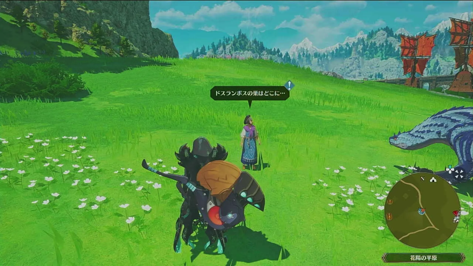 ドスランポスの育て方・その1は、ドスランポスの卵を1個依頼人に納品すると達成となる。ドスランポスは"花陽の平原"で出現するので"花陽の平原"のモンスターの巣を巡って入手しよう。