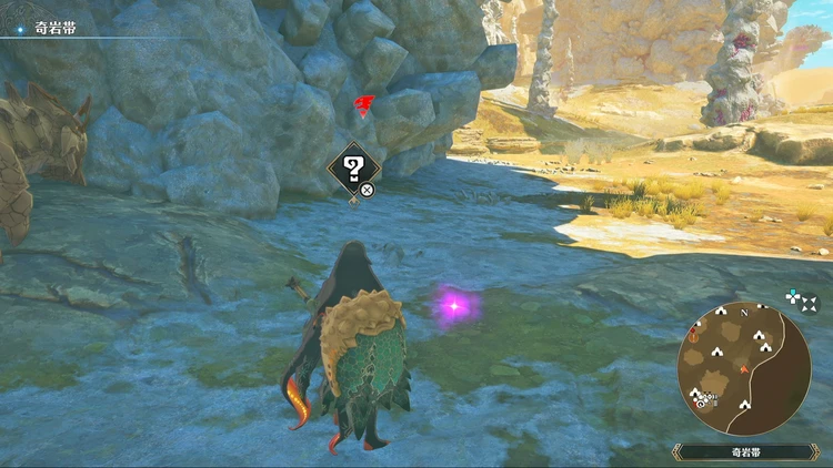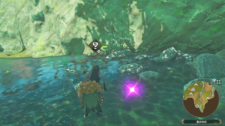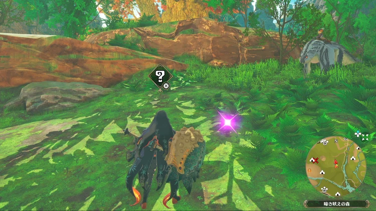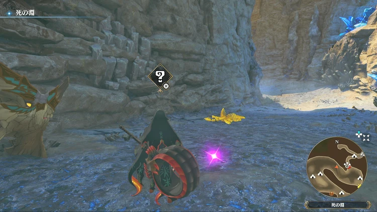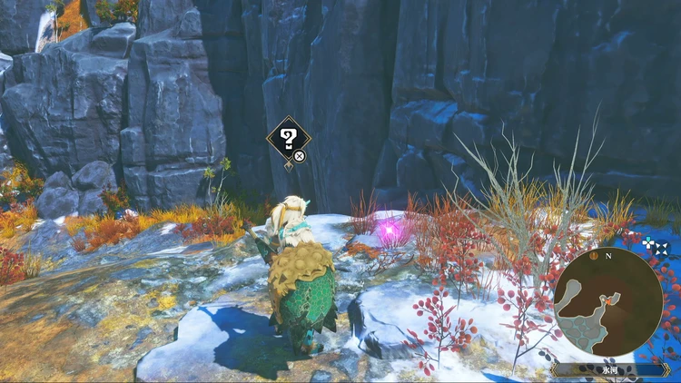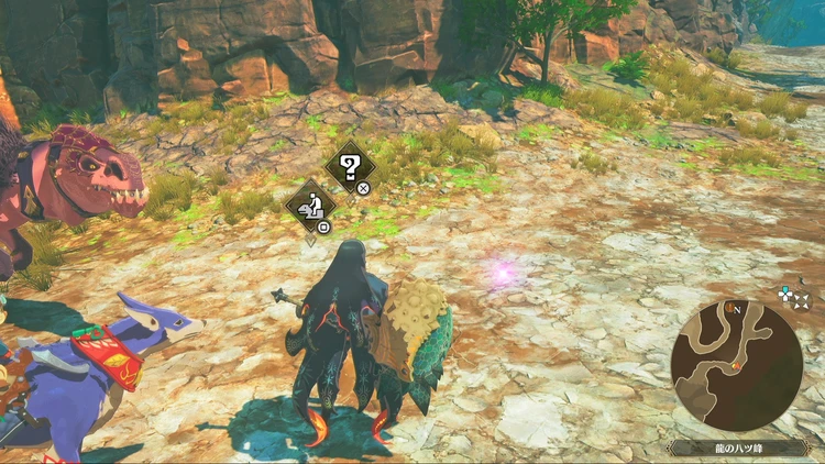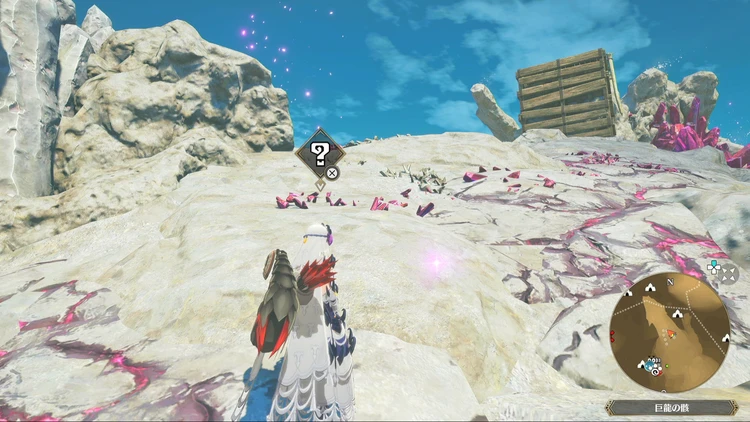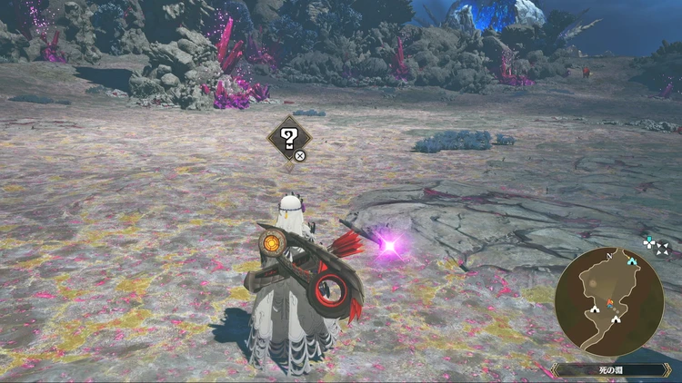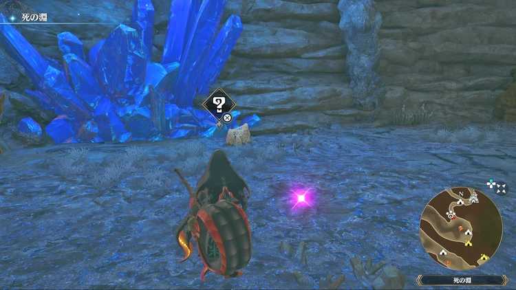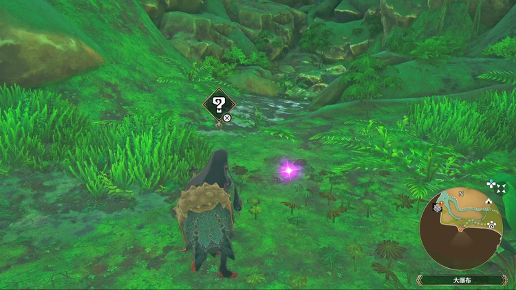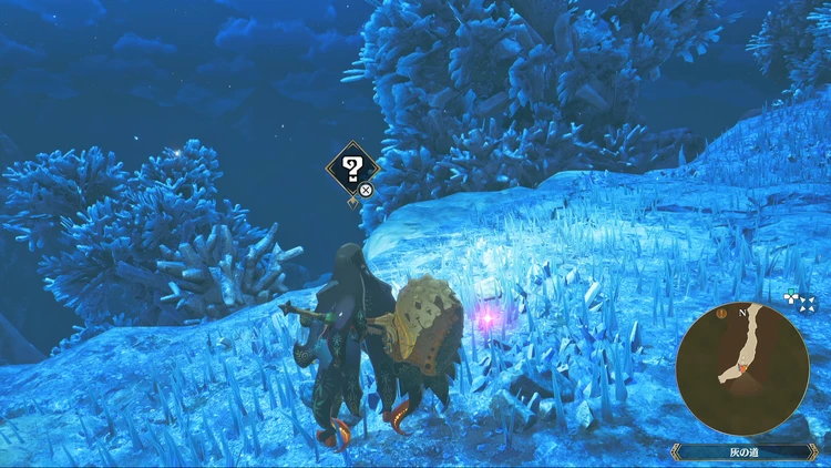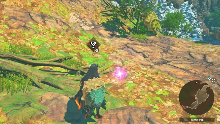痕跡アイテムは、主にフィールドの紫色に光る場所を調べることで入手できる。その他にもNPCに話しかけたら貰える場合などもあるので、探索する際には意識しておくと良いだろう。