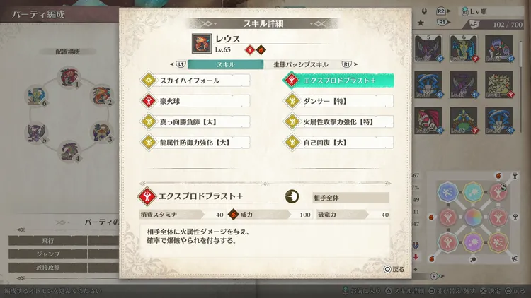 Sランクになるまで里孵しを行うと黒炎王リオレウスがエクスプロドブラスト+というパワー技を覚えるようになるがこちらが全体攻撃かつ高火力のため強力。