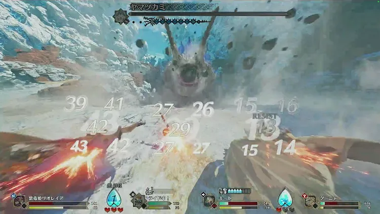 ヤマツカミ戦では、左右の触手と弱点の口内を2回ずつ破壊することでヤマツカミを撃退する戦いになる。