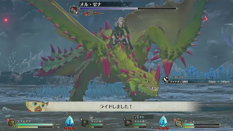 メルゼナが使う大技、「ナイトメアクレイドル」を防ぐにはかなりの高DPSが必要となるので、オトモンにライドすることでライフポイントを削られないようにしよう。
