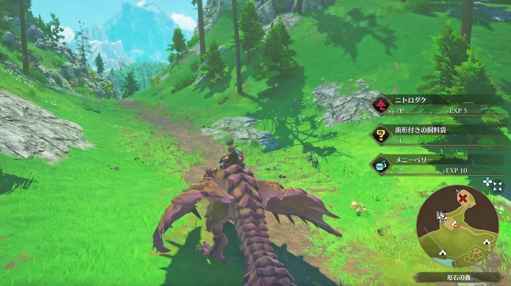 トビカガチを討伐した場所に落とし物「歯型付きの飼料袋」が拾えるので、依頼人のせわしない整備士に届けてあげよう。