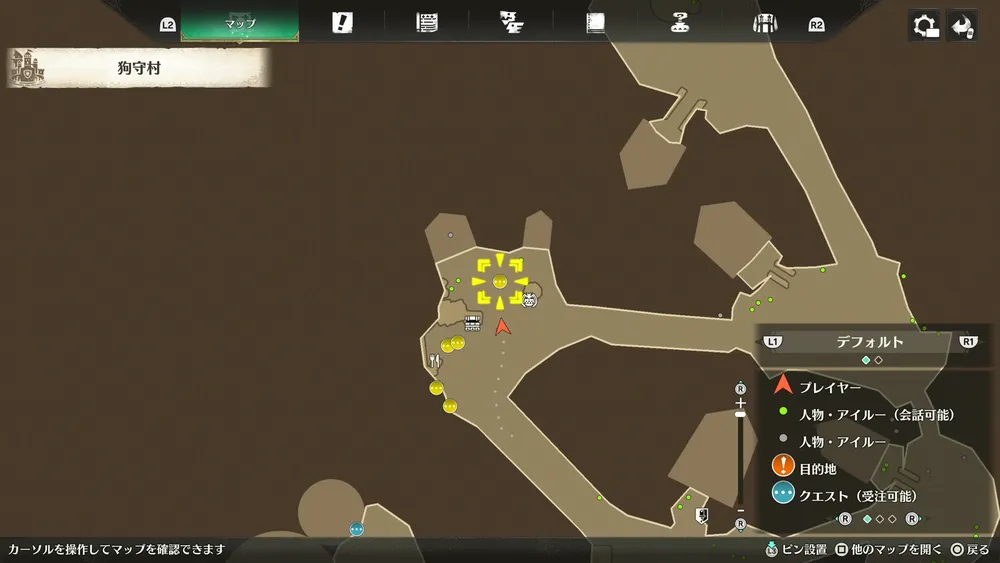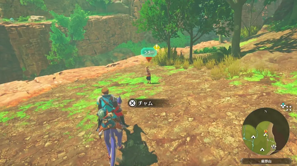 狗守村の北東にいるチャムの母に話しかけた後は、カナルタ深林の北東へ向かおう。狭間の抜け道・入り口のネコタクスタンドを解放してある場合はファストトラベルを使えば時短可能だ。