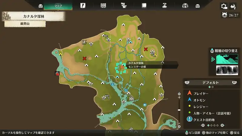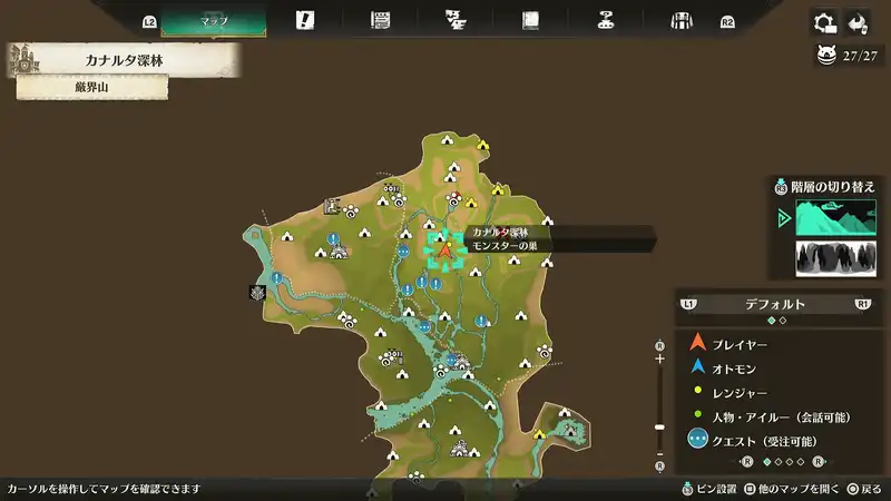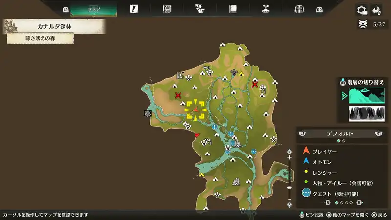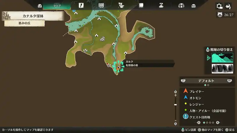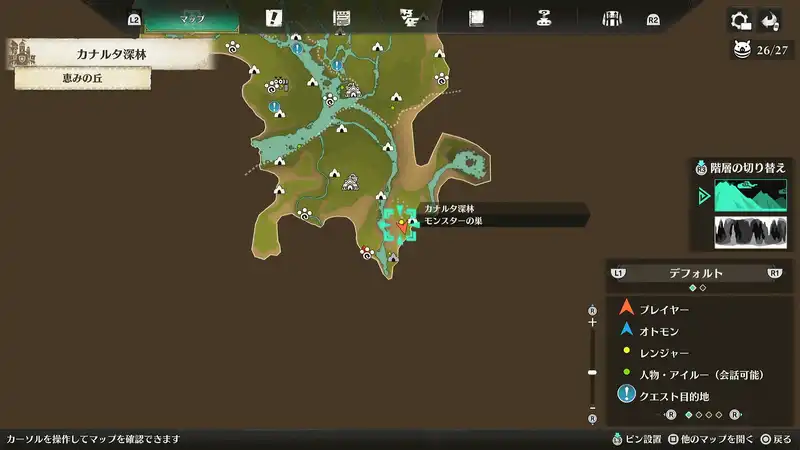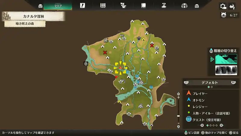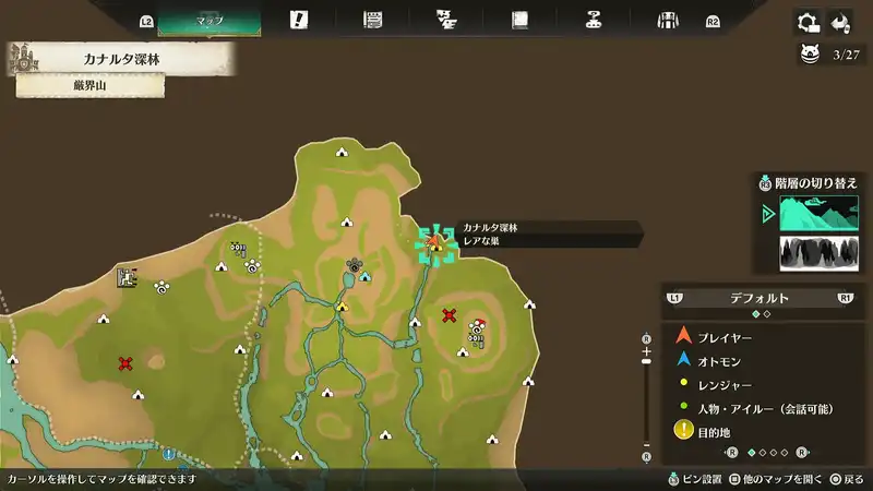 モンハンストーリーズ3(MHST3)の「カナルタ深林」について掲載しています。マップ情報や入手アイテム、宝箱・痕跡・ブーギーの場所をまとめていますので、モンスターハンターストーリーズ3 〜運命の双竜〜のプレイにお役立てください。