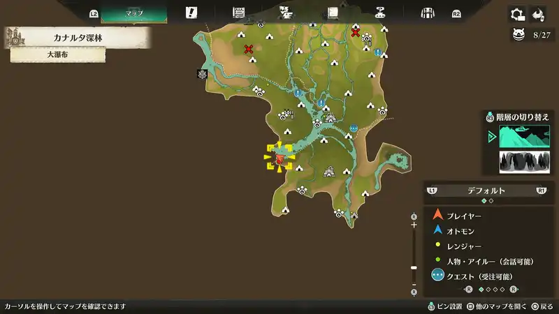 ![]() | 発生時期 大瀑布編(侵獣アオアシラ帰巣後) 発生場所 カナルタ深林 達成条件 カナルタ深林にて高所に連れ去られた人を見つける |