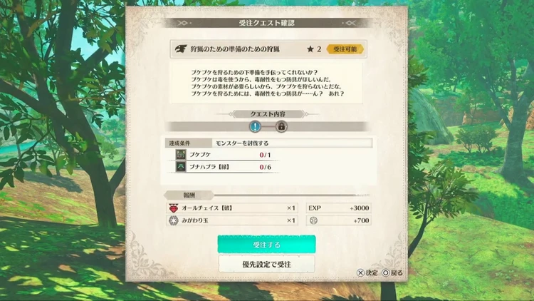 いざ本気を出す時は、クエスト「狩猟のための準備のための狩猟」をクリアした後に受注できる。前提クエスト未クリアの場合は、先に上記のクエストをクリアしよう。