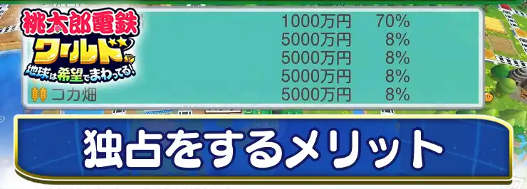 桃鉄ワールドの「独占」について掲載しています。桃鉄ワールドで駅の物件を独占するメリットを記載していますので、桃太郎電鉄ワールド ~地球は希望でまわってる!~(Switch)の攻略にお役立てください。