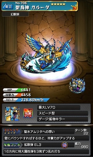 ガルーダも特別☆4-5の能力から外れることなく、いたって普通かなと思います。