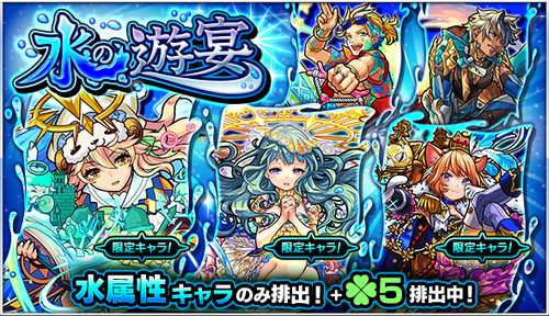 モンスターストライクにおける水属性限定ガチャ”水の遊宴”のキャラガチャシミュレーターです。2022年1月までのすべての排出対象キャラが追加されています。
