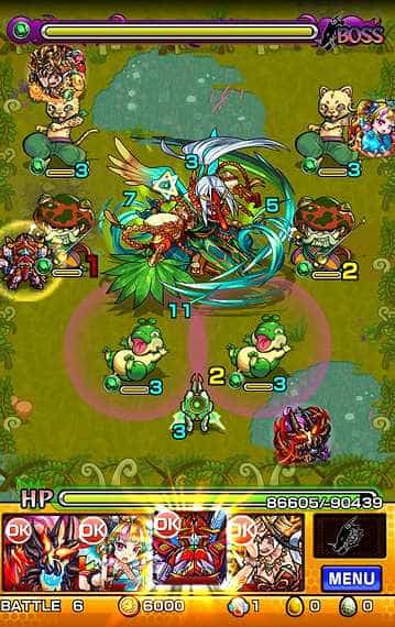 イザナミはボスに攻撃するのに良い位置にいるので、それ以外のモンスターで左上のチーターマンも倒します!