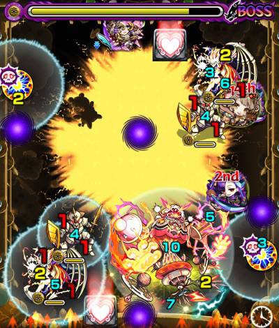 速度ダウンを受けた後は加速壁を利用して殴り回数を増やし、デーヴァの処理を優先します。その後は残りのターンで球を破壊しボスを覚醒させましょう。