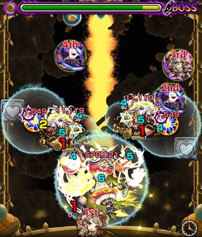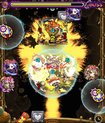 ボス1と同様に雑魚処理から行う必要があります。フェンリルは中央に揃った時に敵同士の間に入り同時処理狙い、離れた時は球を破壊しに行くと効率がいいです。