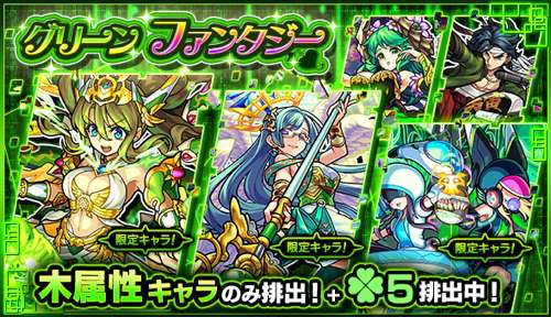 モンスターストライクにおける木属性限定ガチャ”グリーンファンタジー”のキャラガチャシミュレーターです。2022年1月までのすべての排出対象キャラが追加されています。