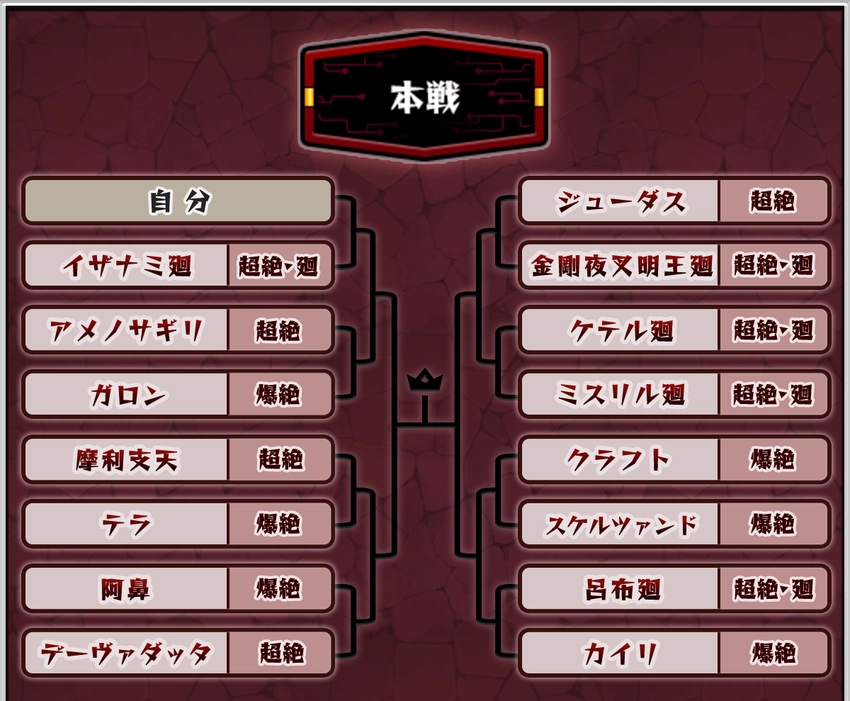 優勝回数が増えていくと本戦のトーナメント表のほとんどが轟絶クエストになるかもしれない。