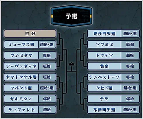 トーナメントには予選と本戦があり、予選を勝ち抜くことで本戦に出場することができる。