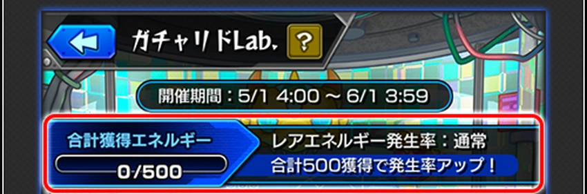 そして、モンストの日にはガチャリドLab.の画面を開くと全属性のエネルギー50個を獲得できるため、ルーティーン化している方は問題ないと思うが、忘れずに開くようにしよう。
